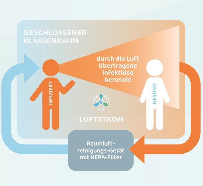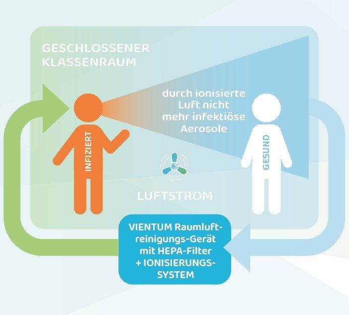 Die Idee hinter unseren Raumluftreinigungs-Geräten ist so einfach wie genial: Vor dem Filtern werden die Staubpartikel und Aerosole und somit die anhaftenden Viren deaktiviert, bevor sie sich im Klassenraum verbreiten können. Das unterscheidet unseren Ansatz von klassischen Raumluftreinigungs-Geräten mit Filtern, UV-C und anderen Technologien.